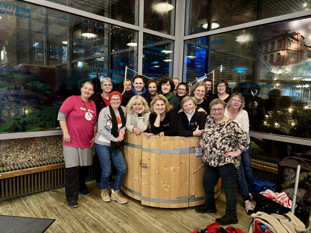 Um 10 Uhr machten wir uns mit mehreren Autos auf den Weg nach Bad Rodach. Nach einem leckeren Mittagessen im Thermenrestaurant starteten wir gestärkt in unseren Verwöhntag: wohltuende Rücken- und Gesichtsmassagen, sanftes Salzpeeling, die KaMaLiCa-Aufsalzung im Solebecken und entspannte Stunden in der Sauna standen auf dem Programm.